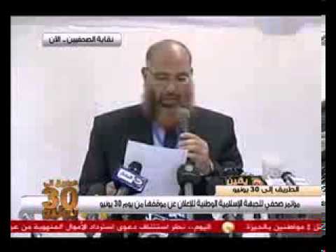 الجبهة الإسلامية: نعلن أن محمد مرسي عيسى العياط فاقد للشرعية وليس رئيساً...